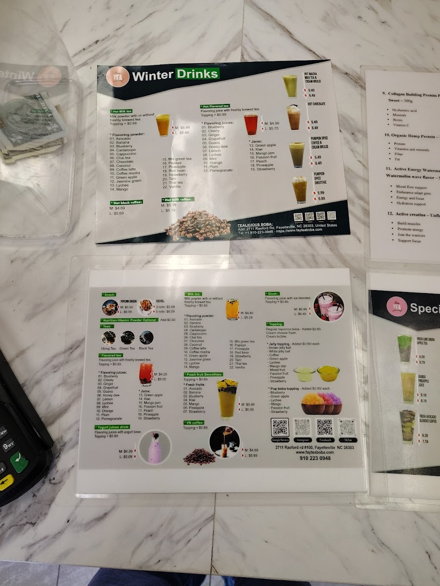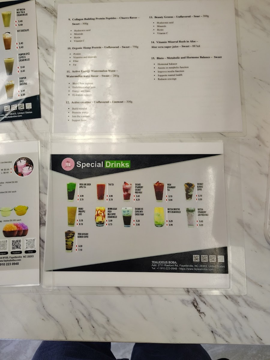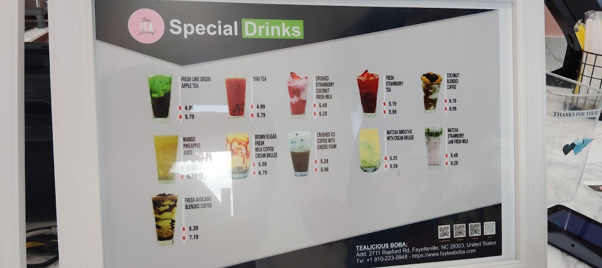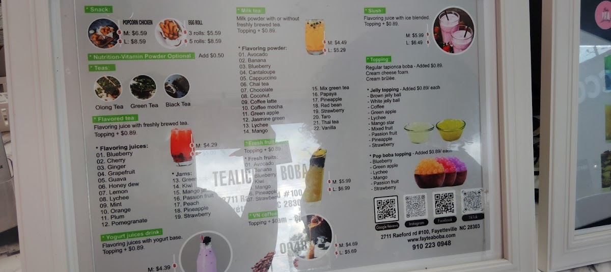 Welcome to Tealicious Boba, a charming café nestled in Fayetteville, NC. This delightful destination offers an impressive menu showcasing a variety of milk teas, each crafted with flavorful powders and the option of freshly brewed tea. Highlights include their Strawberry and Avocado Milk teas, each priced at $6.38, or indulge in their unique Crushed Ice Coffee with Cheese Foam for $6.29.